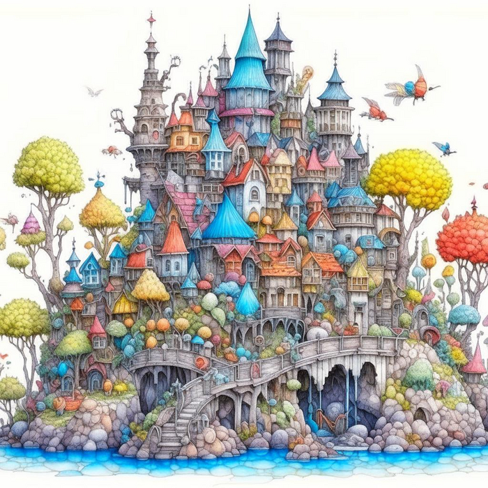Но самая удивительная постройка была в самом сердце королевства. Это был замок, построенный из старых книг, журналов и газет. Стены замка были сделаны из страниц, а окна - из обложек книг. Внутри замка было множество комнат и залов, украшенных обложками и страницами.