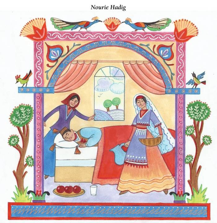 А она по прошествии девяти месяцев произвела на свет двойню – мальчика и девочку, которые были точно пара золотых подвесок с драгоценными камнями. И две феи, появившиеся во дворце, заботились о них, подкладывая для кормления к матушкиным сисечкам. И однажды, желая пососать молока и не находя сосок, младенцы присосались к ее пальцу и так сосали, что кусочек кострицы вышел из-под ногтя. И тогда Талия пробудилась будто от тяжкого сна; и увидев рядом с собой два чудесных создания, дала им грудь, и привязалась к ним больше, чем к самой жизни.