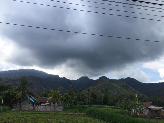 и попытке искупаться (к воде подойти нереально, тапки в прямом смысле плавились на горячем песке), навигатор нас увёл в глубь острова, что обещало более короткий маршрут. Видимо, у Гугл мапс был другой план для нас, когда поднимаясь на байке в гору по серпантинам, дорога внезапно закончилась. Маршрут привёл нас прямо в холм с густыми джунглями. Местные глядя в телефон, улыбались и говорили «нет, здесь нет дороги. Гугл врет».