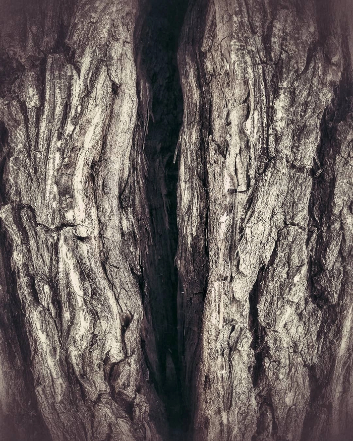 Затейливые узоры древесного тела и наплывающей коры, трещины и выбоины есть ни что иное, как шрамы и отметины нескончаемой борьбы за выживание этих молчаливых исполинов. Но всё же, наращивая "броню", они продолжают свой путь к свету. Навеяно книгой Петера Воллебена "Тайная жизнь деревьев" и иллюстрациями Л.Кэролла