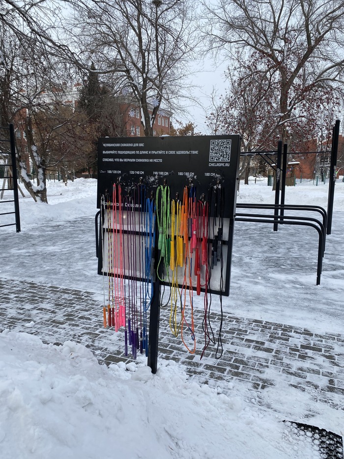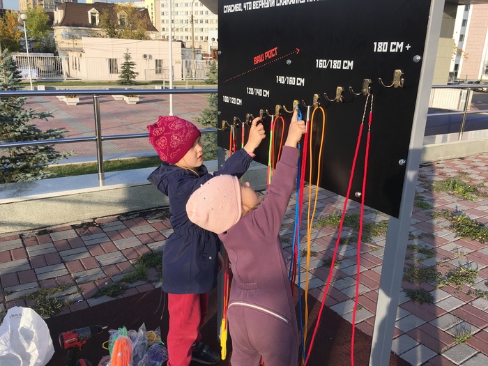 Потом повесили скакалки на любой рост. Так в Челябинске появилось еще одно место, где все желающие могут свободно прыгать на скакалках.