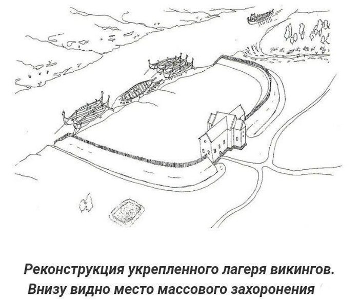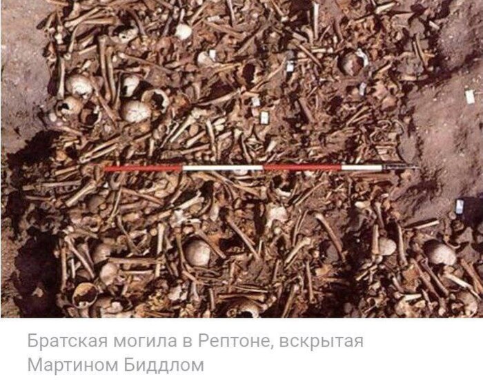 В 1686 году фермер Томас Уокер обнаружил скандинавский курган в Рептоне в Дербишире, где Великая языческая армия стояла лагерем. В кургане находились останки 9-футового викинга (274 см ростом!) Его окружали разрозненные части скелетов ещё 264 воинов, а это означало, что похороненный там человек имел очень высокий статус. На это также указывает и подготовка могилы (ее «пол» был усыпан красным песком), а также наличие четырех костяков молодых людей в ее углу, вероятно, ритуальных жертв. К сожалению, выделить среди перемешанных костяков костяк «гиганта» не удалось. До наших дней дошло только описание этого великана.