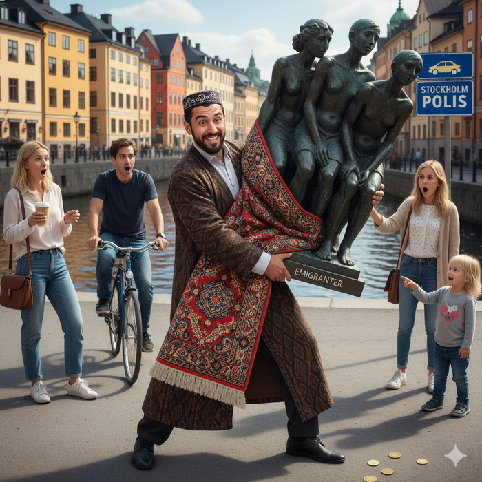 Скульптура стояла себе у Дома эмигрантов, никого не трогала и, что самое смешное, НИКЕМ НЕ ОХРАНЯЛАСЬ. Ну, а чо, в Швеции же не воруют, да?