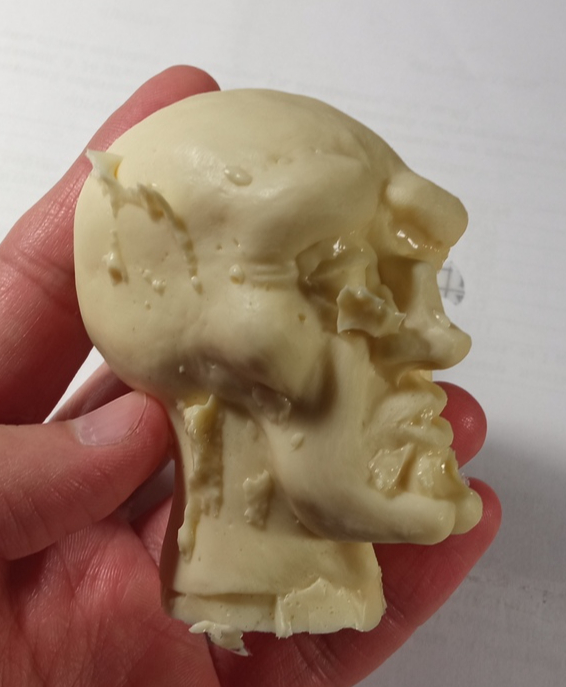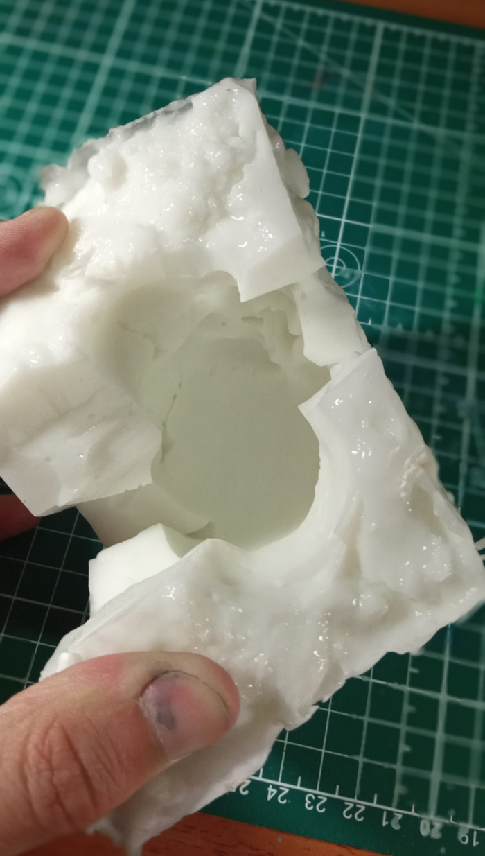 Однако силикон имел другие планы и решил не проливать голову целиком, а оставить большие пространства пустыми. Как оказалось, это из-за того, что он был слишком вязким (уже заказал более текучую версию).