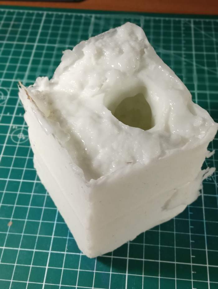 Опыта работы ни с литьевыми силиконами, ни с литьевыми пластиками у меня до этого не было. Поэтому, почитав статьи в этих ваших ентернетах, я заказал себе на пробу силикон на основе олова с твердостью s30 по Шору A. Сделал форму для заливки: