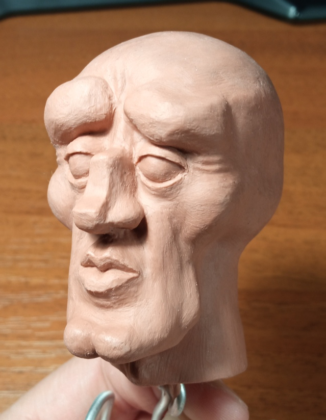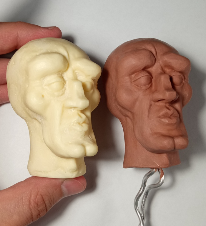 Изначально леплю из скульптурного пластилина Chavant NSP. После сделаю силиконовую форму и залью в неё жидкий двухкомпонентный пластик.