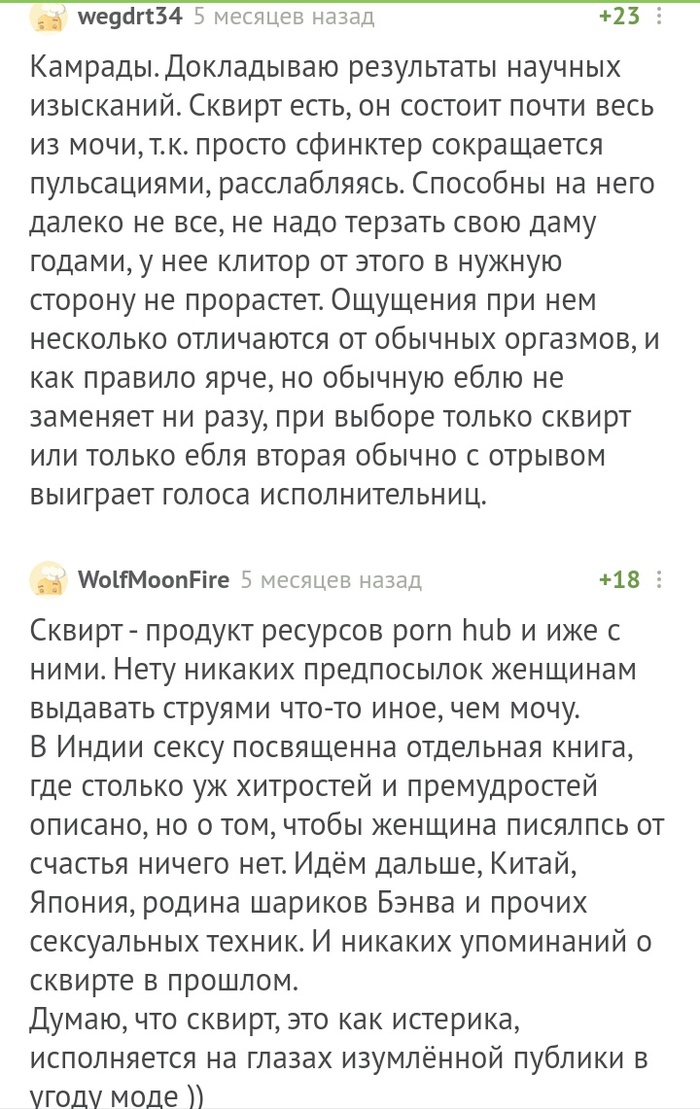 15 Huysteg О сквирте и чужих жёнах 4 года назад #comment_201624407 Показать полностью 1 Комментарии на Пикабу Сквирт Длиннопост Скриншот Ещё 0