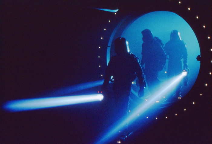 Он взял под мышку Солярис, Сияние Кубрика, Чужого опять же, доработал сценарий и приступил. Главным принципом на съемках была достоверность - декораторам сказали прямо - делайте достоверно и съемочная группа буквально отстроила интерьеры двух космических кораблей, создали скафандры, каждый из которых весил по 25 килограммов, кучи оборудования и тому подобного. На корабле, на котором спасательная группа прибывала, каждая деталь несла не только эстетическую, но и практическую функцию. Например, для того, чтобы пережить перегрузки при дальнем перелете, команда хоронилась в специальных капсулах с бульоном, который сливался, как в кастрюле с макаронами. Но если что-то шло не так, и капсулу приходилось вскрывать вручную, перед каждой находились решетки, куда раствор уходил, чтобы не разливаться по всему кораблю.