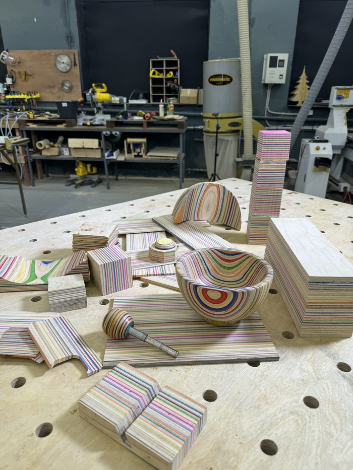 Вобщем так как я с детства работаю с деревом - я решил обломки досок не выбрасывать. Я собираю их и периодически склеиваю из них различные изделия.