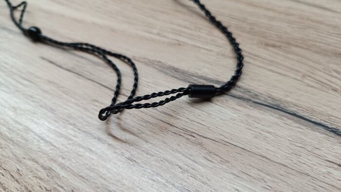 Отдельно хотелось бы остановится на проводе. Это витой двухжильный провод в пластиковой оболочке с прямым разъемом Mini Jack 3.5 c одной стороны и 2-контактными 0.78 мм разъемами с позолоченными контактами с другой стороны.