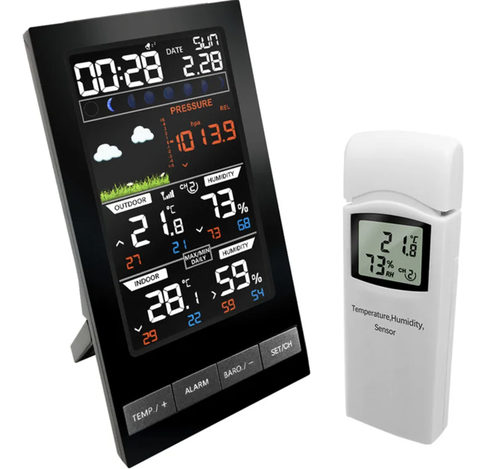 Беспроводные датчики упрощают установку и размещение. Метеостанция подходит для дома, дачи и загородного участка. Формат удобен для ежедневного контроля микроклимата. Информация считывается быстро и наглядно. Полезный инструмент для комфортной среды.