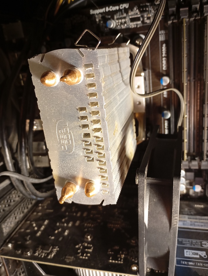 Как то вечером мне захотелось почистить ПК так сказать порядок навести,а то давно не заглядывал в корпус с прошлого года аж.Ну и тут я конечно понимаю что башенку первую нужно чистить.Ну я и пошёл.После того как я снял кулёк почистил башенку решил обратно собрать.Я думал как это сделать а то комп на бок ложить вообще не хочется сил нету,и тут я начал на весу держать кулер и пытается закрепить его скобками.Я в жизни так не задалбливался как с ними,даже после того как я на бок положил ПК я еле еле натянул эти скобы на кулер,они ещё так гнулись ужасно но я правильно их поставил и думаю слава богу ну нахер это скобы.Так что ребята думайте на счёт кулеров нужно ли вам брать башни или нет.