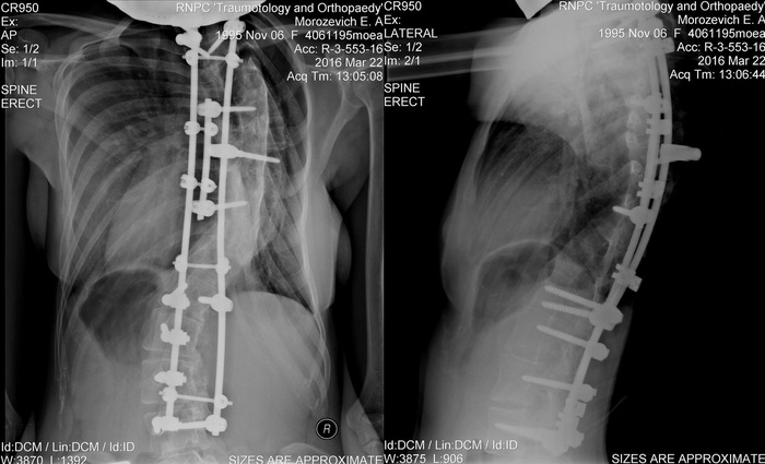 Решение об оперативном вмешательстве было принято. Хирурги установили в позвонки винты, которые соединили стержнями, затем постепенно изменили ось позвоночника в трех плоскостях, за счет чего добились коррекции.
