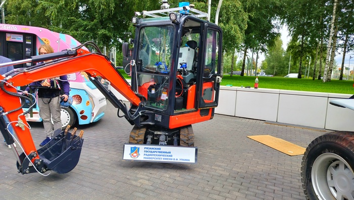 Вход на выставку, сразу беспилотные: грузовик, комбайн, трактор, экскаватор и роботы-убощики улиц
