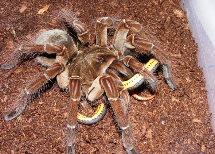 У меня общим счётом шесть лет опыта в содержании и работой со сколопендрами и пауками-птицеедами. И жили не только "вид для новичка", но и такие злые виды, как pterinochilus murinus, neteroscodra maculata, citharischius crawshayi, ceratogyrus marshalli. Это красивые, но весьма агрессивные и токсичные виды. Вот как раз на фото молодая самка маршалли.