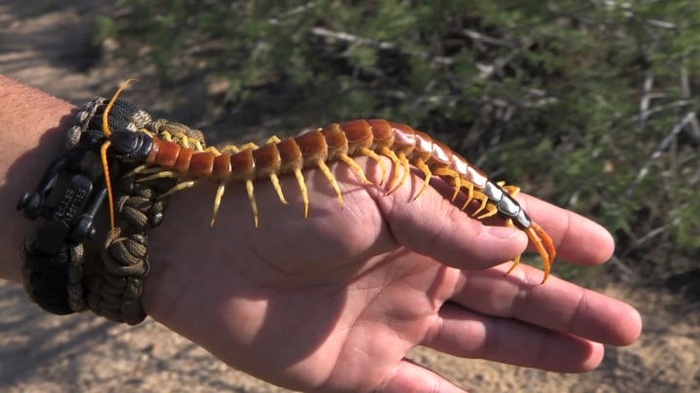 Американская многоножечка отряда Сколопендровые, её зовут Scolopendra heros, ну или "пустынная калифорнийская", у нас в простонародье)