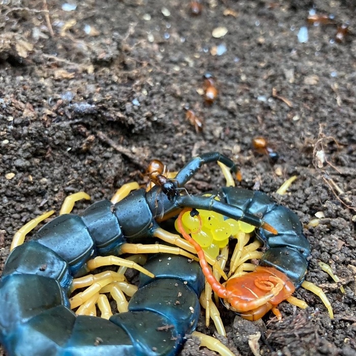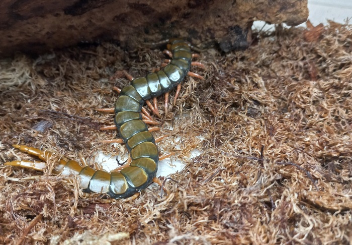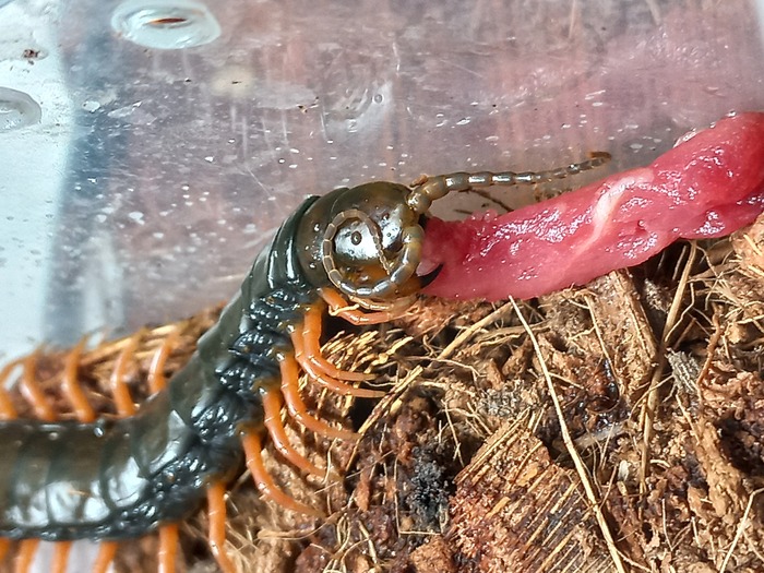 Азиатская многоножечка Scolopendra cataracta - необычная сколопендра, охотится как на земле так и под водой. Прекрасно плавает и ныряет, имеет гидрофобное покрытие на панцире. Может больно укусить, но это безопасно. Уверяю)