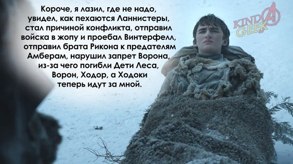 — Да, не знал, что Баннен может так хорошо пахнуть, — уныло, как всегда, вымолвил Эдд. — Даже захотелось кусочек от него отрезать. Будь у нас яблочная подлива, я бы, может, и решился. По мне, свинина всего вкуснее с яблочной подливой. — Эдд развязал штаны и пустил желтую дымящуюся струю. — Ты смотри не умирай, Сэм, а то ведь я могу не устоять. Сала на тебе куда больше, чем на Баннене, а я всегда любил шкварки. — Он вздохнул. — Мы выступаем на рассвете, слыхал? Солнце будет или снег, все равно уйдем — так сказал Старый Медведь.