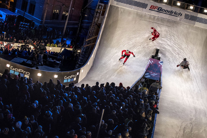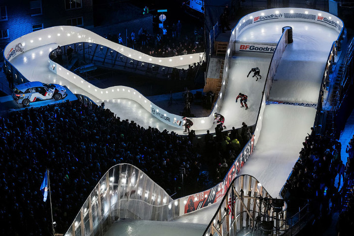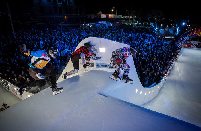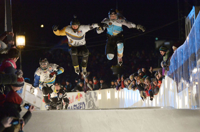 Red Bull Crashed Ice — международные соревнования по скоростному спуску на коньках по ледяному желобу Ice Cross Downhill, проводимые компанией Red Bull. (Фото Lionel Bonaventure):