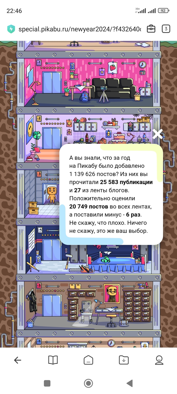 30964 минуты = 516 часов = 64 рабочего дня. мне нужно над этим подумать. Сижу я только на работе, дома семья и ребенок. в этом году 247 рабочих дня из которых 64 рабочего дня я на пикабу. Жесть товарищи. Я прошу прощения у всех. Желаю всем в новом году Ценить время, которое у нас есть. Любите, живите. Проводите с пользой каждую минуту.