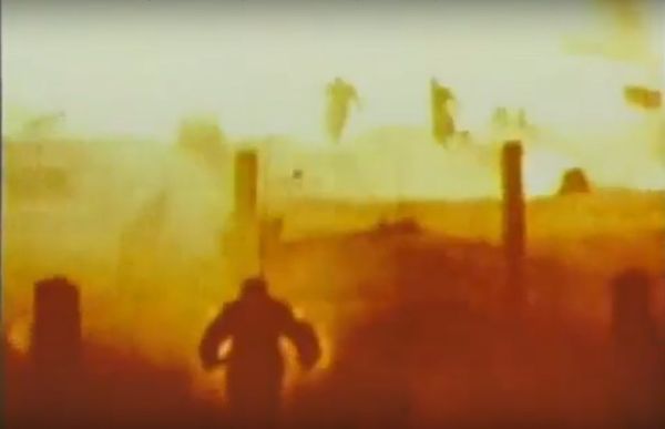 Кинокамеры запечатлели ужасающую картину: от ракеты кругами расходились волны пламени, пожирая все на своем пути, из огня выскакивали и разбегались во все стороны горящие, как факелы, люди. Некоторые добегали до ограды из колючей проволоки и безжизненно повисали на ней.