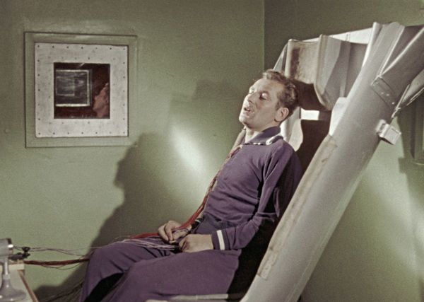 Герман Титов, дублер Гагарина, во время тренировки в сурдокамере в феврале 1961 года