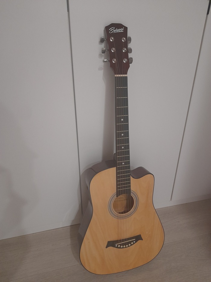 Наступил очередной тёплый вечер после жаркого дня, а что делать, конечно пройтись погулять, живу рядом с прогулочными зонами и набережной, в очередной раз употребив пару бокалов красного сладкого в приподнятом настроении вышел на променад и вот спускаясь к набережной я встретил его, гитариста с чехлом денег перед собой, не то что бы я раньше гитару не видел или меня вскружила идея вот так стоять и так легко зарабатывать денег, но музыка меня как то подхватила и долго держала, он ещё начал наигрывать какую то очень знакомую мелодию, а на меня нахлынули воспоминания из далёких нулевых, как мы по этой же набережной так же толпой гуляли и из всех только один умел играть на гитаре, но было это круто. Постояв поразмыслив, немного подзагрузившись я решил, что мне так же нужна гитара, тем более последний раз когда мне было скучно я купил себе сварочный аппарат это конечно так же круто, но не как гитара это же вообще уважение всех пацанов, своих сигарет иметь не надо просто жестом в толпу показываешь желание покурить и вот уже и сигарета и огонёк, девчонки всегда рядом восторженно на тебя глядят и восхищаются тем как ты мастерски чего то там пальцами делаешь по струнам, ты в этот момент для них всё и в последствии тёплое воспоминание для них, стерев лёгкую ностальгическую улыбку с лица я пошёл дальше, но уже как то не так что ли весело и лёгкое чувство опьянения куда разом улетучилось, нет возможности больше собраться той толпой, а воспоминания начали ворошить дальнии закоулки памяти и мною было решено приобрести гитару твёрдо и не вот так, что вот на следующей неделе, а прям тут же полез на авито и каково же было моё удивление, что эта вещь стоит какие то смешные 3500 рублей, я аж не понял почему я не сделал этого раньше и вот тут буквально в 5 минутах хотьбы, домой вернулся я с новой гитарой, конечно там были гитары куда дороже, но целесообразность всё таки во мне есть и решил я взять для ознакомления самый простой вариант, теперь смотрю на неё и думаю с чего начинать то? Вопрос риторический, всем мира.