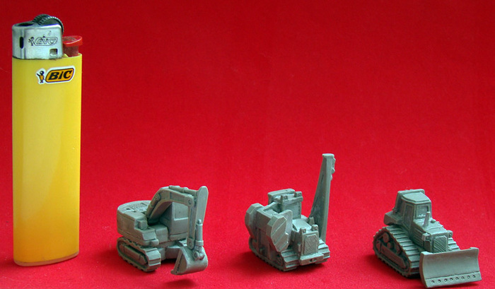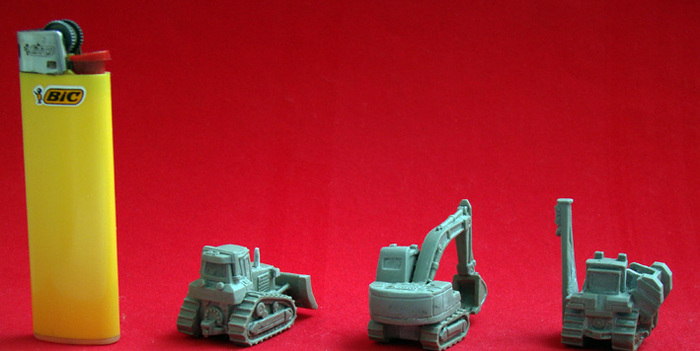 Набор техники "Caterpillar" для какой-то газпромовской конторы. Всё несколько упрощённо, ибо это сувениры и потом технология литья большого тиража " в один шлепок" исключает изыски в виде излишней детализации, поднутрений и т.п.