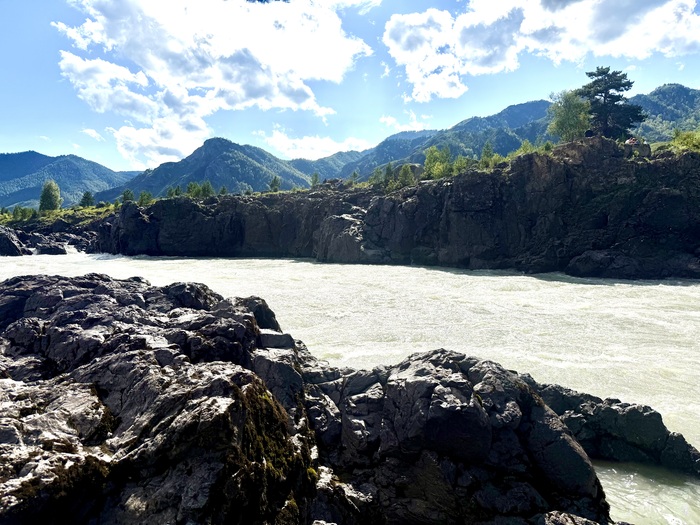 Прыгать с моста не вариант — там поток такой, что педали отрывает у Лады. Нашёл спуск под опорой моста, срываюсь вниз босиком. Камни острые, Катунь — ледяная до костей. Сердце колотится и в голове только: «Куда ты лезешь, хоспаде!»