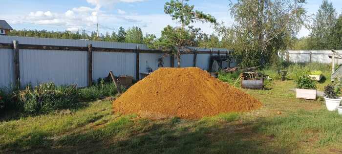Когда мы ехали домой мы с мужем пребывали под действием эндорфинов. Потому что мы заехали на биржу большегрузов и купили Камаз кильдямского песка. Я не знаю под действием ещё чего ещё мы были раз за семитонную машину песка мы заплатили как за машину пыльцы фей 13.000 руб. В этот же вечер взяв наши большие ложки любимые лопаты эту кучу мы раскидали.