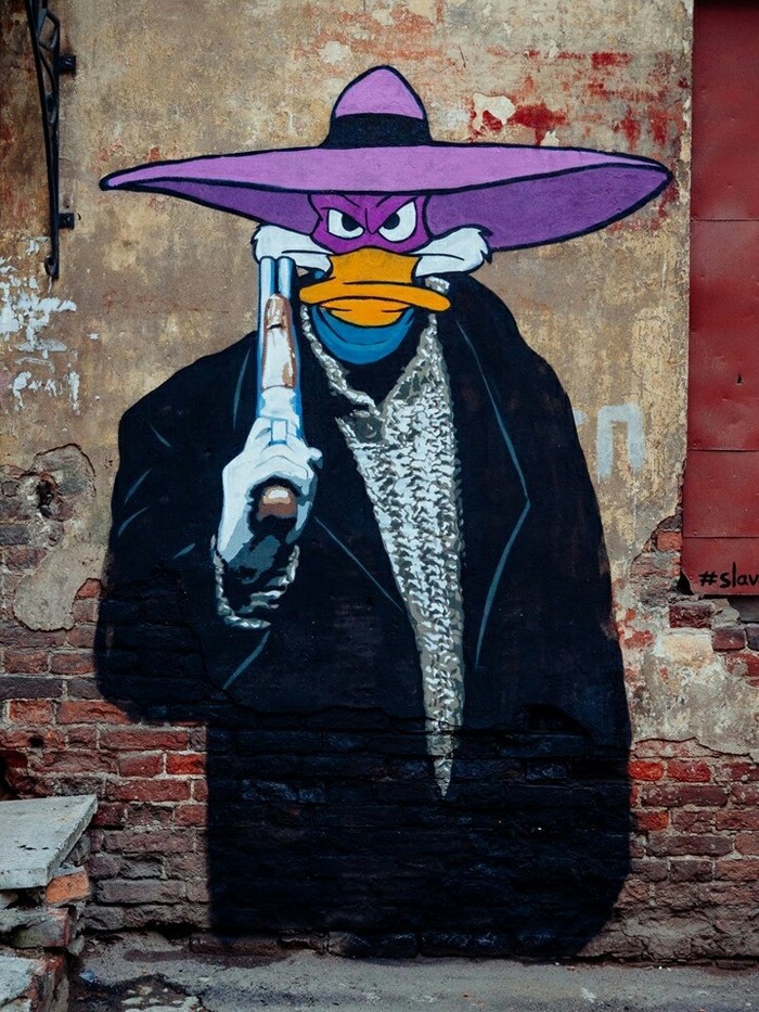 В Екатеринбурге на ул.Орджоникидзе, 12, появилась новая работа Славы PTRK. Черепашки ниндзя и Эйприл предстают в образе героев сериала «Бригада».