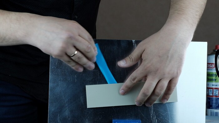 3. После очистки используйте изопропиловый спирт + вода (50 на 50) для обезжиривания. Дождитесь высыхания. (ИСПОЛЬЗОВАТЬ УАЙТ-СИПРИТ, КАЛОШУ, ГОЛОШУ и ГАВРОШУ НЕЛЬЗЯ - ЭТО ИСПОРТИТ КЛЕЕВОЙ СЛОЙ ЛЕНТЫ);