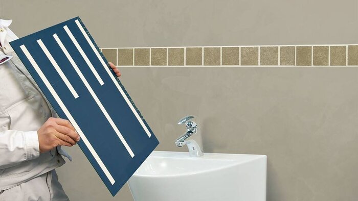 5. Нанесите ленты не касаясь пальцами его клеевого слоя. Ленту не нужно натягивать во время нанесения. После нанесения плотно прижмите ленту по все площади;