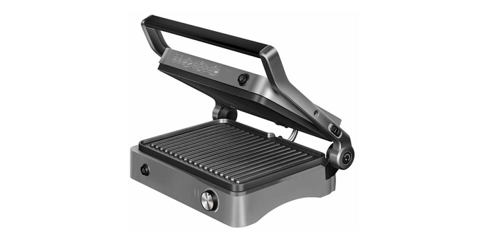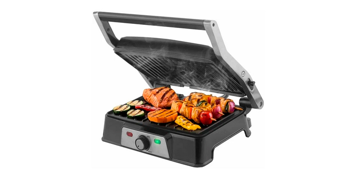 Открытие на 180°: Верхняя пластина открывается для барбекю и регулируется по высоте, что подходит для продуктов разной толщины.