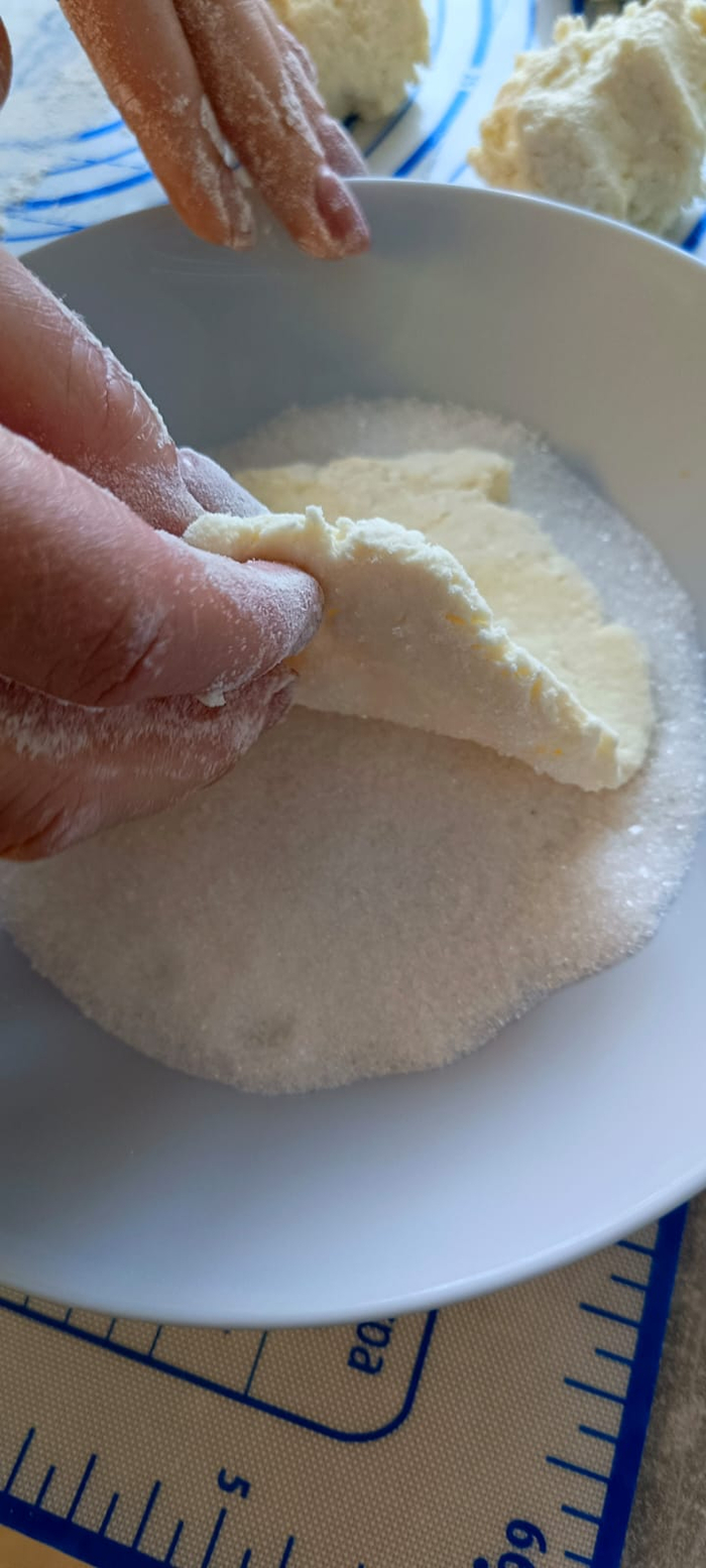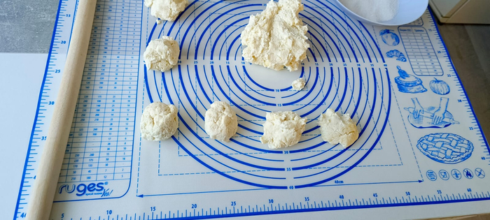 Набираю в миски в одинаковой пропорции стакан муки, стакан манки, стакан сахара и чайную ложку корицы.