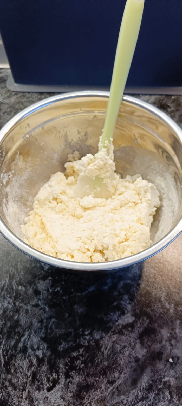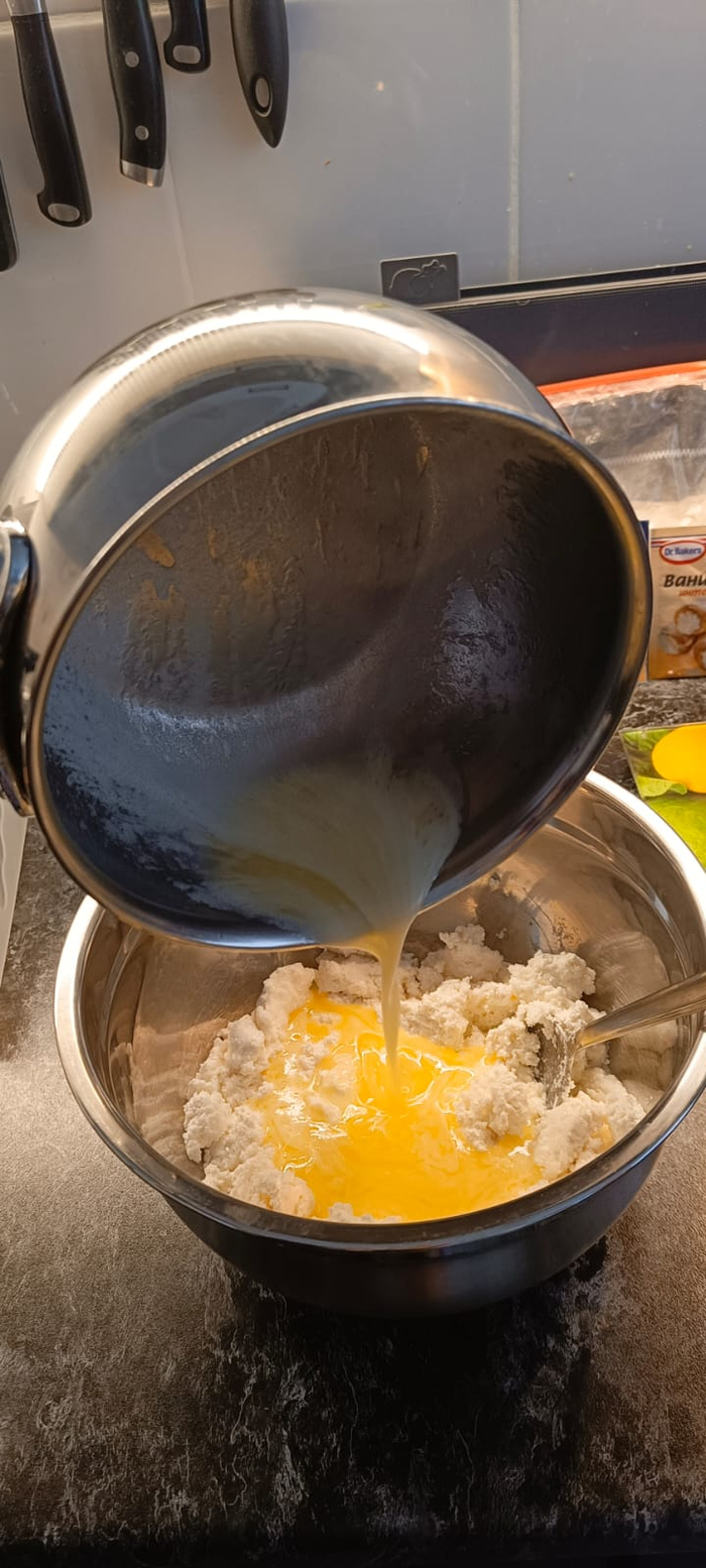 Сока яблок и сливочного масла достаточно чтоб пропитать сухие ингредиенты.