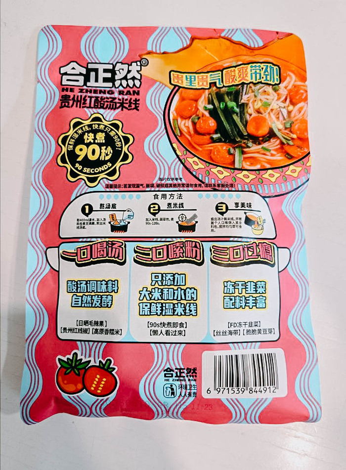 Рисовая лапша быстрого приготовления с красным кисло-сладким супом в Гуйчжоуском стиле He Zheng Ran