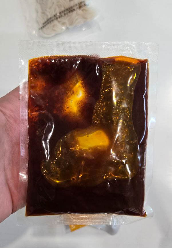 В итоге получаем поллитровую порцию горячего кисло-сладкого супа с небольшой остринкой. Кислинка обусловлена использованием местных томатов черри и красного перца чили, которые ферментируются в глиняных горшках до года. Влажная рисовая лапша, которая хорошо впитывает насыщенный бульон. В общем советую к пробе. Минус в том что я не нашел её нигде на маркетплейсах.