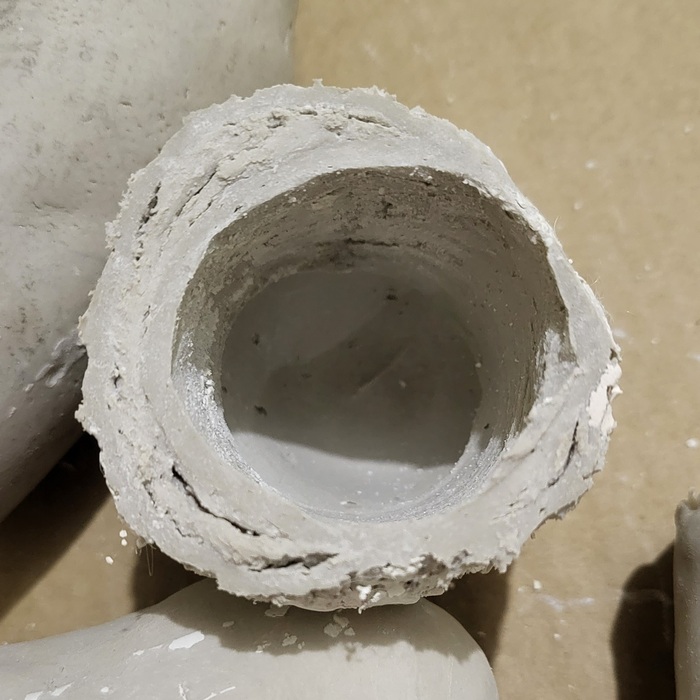 Ещё минут через 10 снова проверить и по необходимости/возможности долить. Форму не разбирать, так и оставить сохнуть на 2 суток (только не на солнце/ батарее), через сутки будет ещё хрупковато. Потом можно разобрать форму, чтобы дать высохнуть алебастру. Он твёрдый, но очень влажный, если его начать отбивать, то во все стороны полетят буквально брызги, которые придется отмывать. Лучше посушить его недельку, а потом взять в руки молоток и потихоньку ударами по касательной начать его сбивать, извлекая слепок: