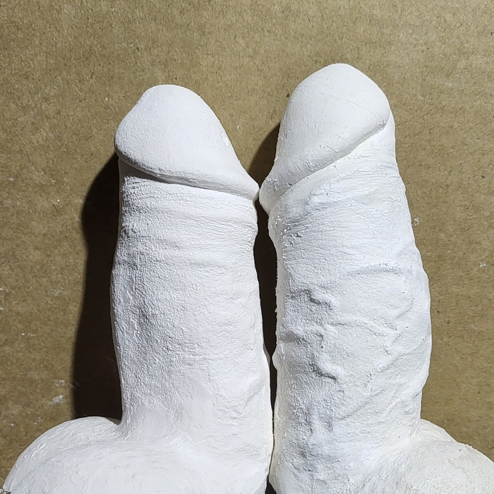 Вот уж точно - отсекая всё лишнее. Это, пожалуй, самый волнительный момент во всей эпопее. Во-первых, наконец станет понятно, получилось или нет. А во-вторых, вы впервые увидите свой член со стороны и, что немаловажно с точки зрения новизны ощущений, подержите его в руках, не чувствуя при этом привычных прикосновений. Это очень необычно! После полного извлечения надо промыть под краном, можно потереть той же зубной щёткой, чтобы полностью удалить алебастр. И, пока цемент ещё мягкий, аккуратно удалить ножом дефекты. Полного высыхания придётся подождать несколько дней.