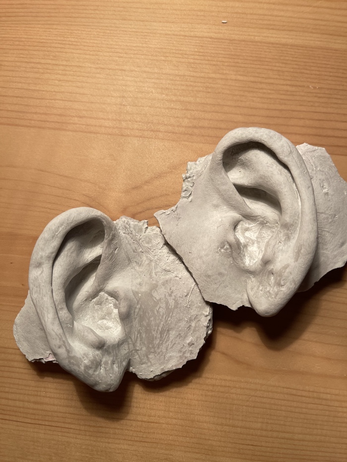 Итак, на пути к созданию реалистичных фентези ух самый первый шаг - сделать слепок собственных ушей, чтобы сажать форму будущего изделия на них.