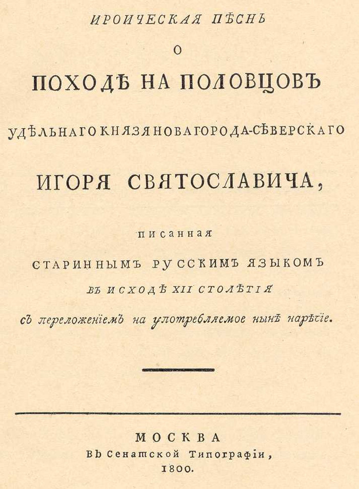 Большой заслугой Мусина-Пушкина было то, что он быстро распознал истинную ценность «Слова». Вскоре специально для Екатерины была снята копия, которую снабдили переводом и комментариями. А уже в 1800-м году вышло печатное издание памятника.