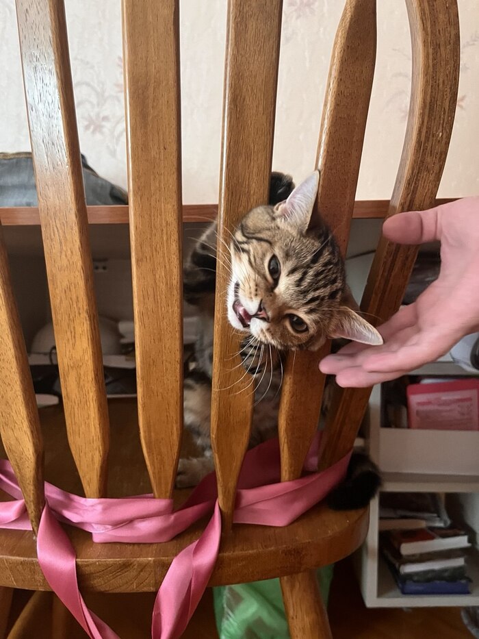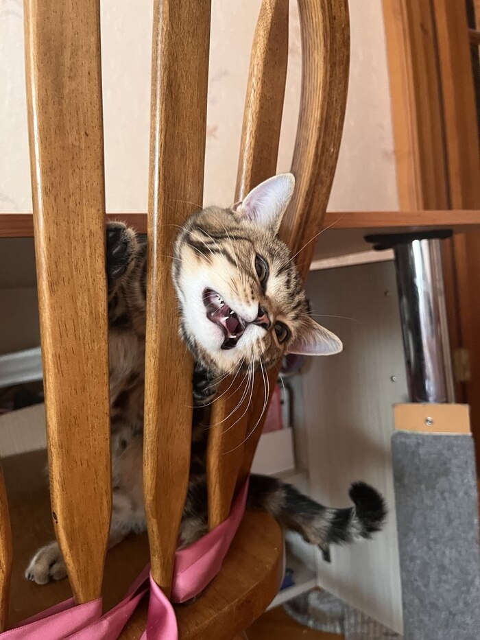 Застрял головой в стуле. Вовремя увидели