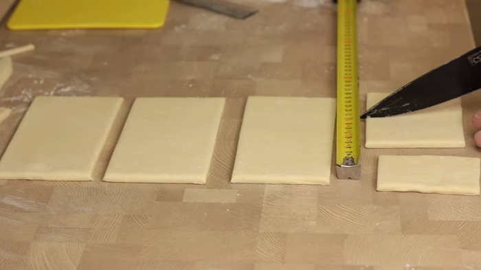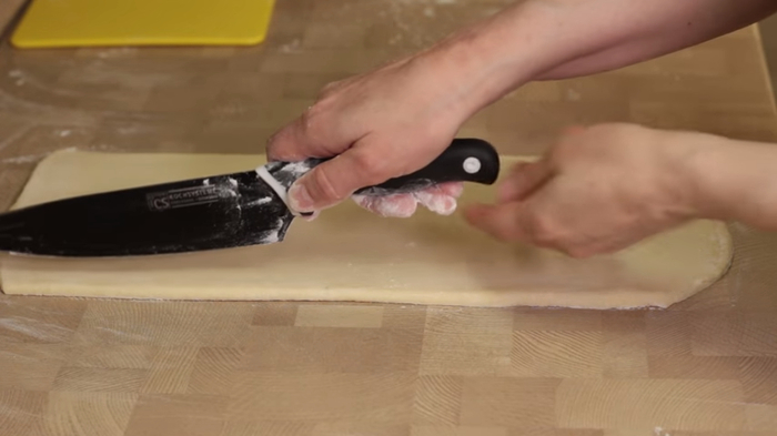Края теста лучше обрезать острым ножом. Обрезки тоже можно использовать.