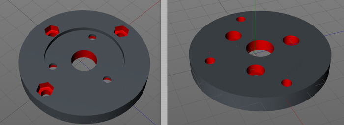 А внутри там очень уютная площадка под 3 винта. М4 подходят, в наличии имеются, стало быть сюда и примоделимся.
