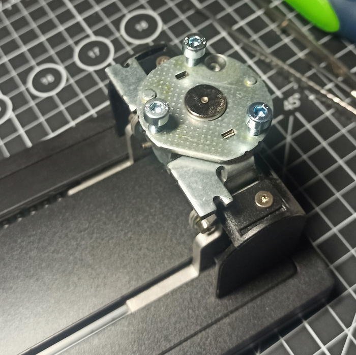 К счастью, двух винтов оказалось вполне достаточно. М4х8, самые мелкие, что у меня были оказались длинноваты. Упирались в основание под площадкой. Пришлось по 4 мм спилить.