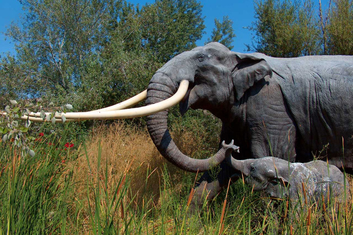 Знакомьтесь, палеолоксодон, или прямобивневый слон. На фото выше произведена реставрация данного гиганта в натуральную величину, правда, скульпторы забыли термин "прямобивневый" и "прикрутили" ему бивни африканского слона.