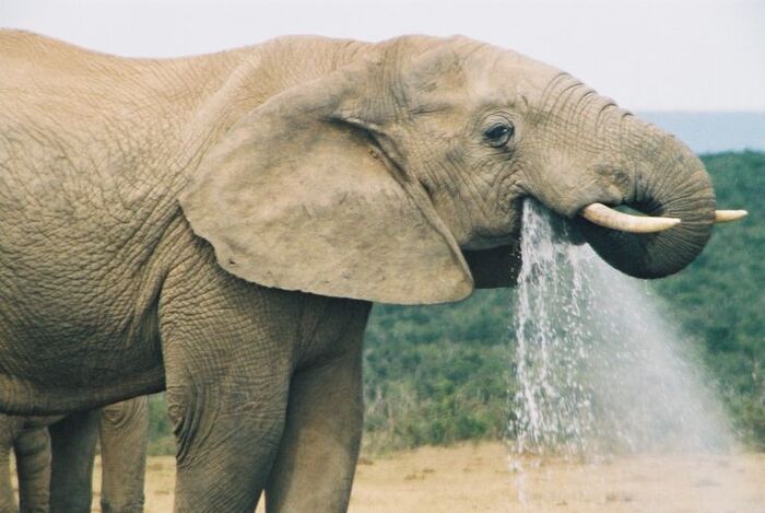 Для того, чтобы всосать столько воды, слоны расширяют ноздри, освобождая в хоботе дополнительное место.