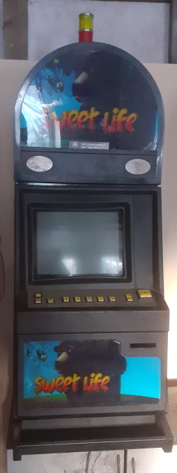 С появлением интернета увидел, что я такой не один и многие собирают самостоятельно себе аппараты. И вот однажды мониторя барахолку на эту тему, наткнулся на объявление о продаже аркадного кабинета, который гнил на складе после закрытия бара в котором он когда-то трудился. Работоспособность была под вопросом, поэтому продавец подвинулся по цене, и вот за 20000 рублей я приобрел свой первый аркадный автомат. С ходу он не заработал, но после небольших манипуляций все запустилось, и мы с друзьями в течении года активно кидали в него десяточки и играли в игры. За это время я неоднократно слышал вопрос "А клубнички тут есть?". Клубничек там не было, да и не место им там. Но это натолкнуло на мысль собрать второй аппарат, по типу тех в которые мы играли вначале нулевых. Залов со всякими клубничками у нас на районе было аж шесть штук. В интернете я нашел программу лягушек, придумал как сделать кнопки из старой клавиатуры, в общем в голове был готов план как сделать аппарат из старого ПК. С корпусом решил не замарачиваться, ибо решил что раз все залы закрыли, то корпусов должно валяться где-то много, но в продаже их не оказалось. Так эта идея ушла в долгий ящик. И вот однажды мониторя барахолку наткнулся на три убитых автомата. Правда о том, что они убитые сказано не было. Фото было маленькое, толком ничего не разобрать. При созвоне продавец заверил что все исправно и хранится под крышей. Договорились о встрече, ехать пришлось 30 километров. Подъезжая, набрал продавцу, на что он мне ответил: "Знаете, автоматы не работают, и ржавые. Я думал что успею починить и задуть с баллончика. Если вы дадите залог, то я все починю и заберете рабочие". Я конечно расстроился, ибо уже мысленно играл в них. Решил все же подъехать посмотреть. В реале оказалось еще страшнее чем на словах. Стояли они под открытым небом и были ржавые полностью, краска отваливалась кусками. Два вообще не подавали признаков жизни, один выдал изображение. Я был настроен на покупку и находился в состоянии какой-то эйфории. По этому загрузили который подал признаки жизни, а остальные оставили на ремонт. В здравом рассудке яб не стал конечно брать такой хлам за такие деньги(8000 за один). Привез его в гараж и стал рассматривать. Ключей не было от них ни одного. Вскрыл дверцу, и обнаружил там плату с обычным VGA выходом. Быстренько снял плату и кнопки с проводами и помчался домой в надежде поиграть. К слову, продавец утверждал что без ключей и купюроприемника поиграть не получится. Дома я подключил плату к монитору, в ящик тумбочки опустил кнопки, чтоб провода не мешались и стал по очереди замыкать провода с замков, в надежде определить их предназначение.Все оказалась просто, один замок добавить кредиты, другой снять кредиты, третий статистика. И вот, кредиты на счету, картинка есть, но игра не начинается. Оказалось контакты на плате окислились. Почистил, и все заработало.