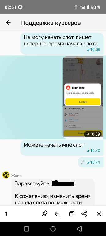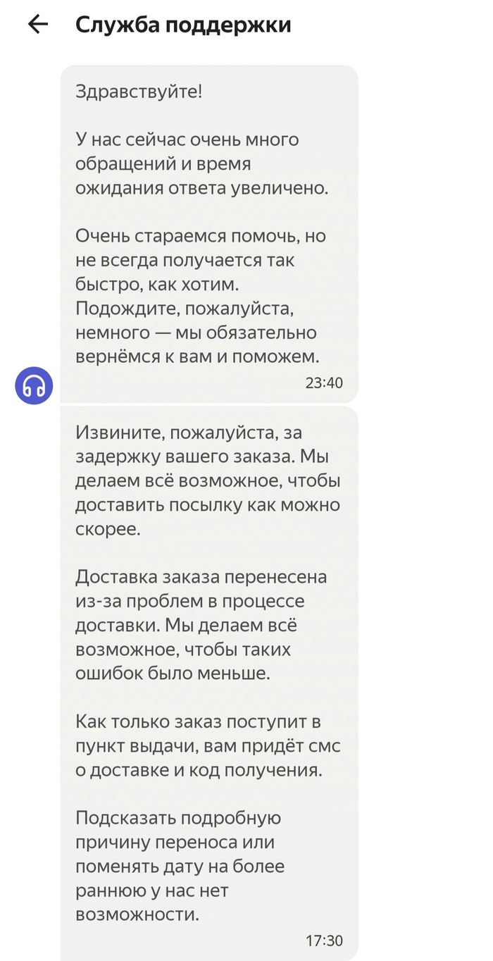 После последнего моего сообщения с последнего скрина диалог со мной просто был закрыт и моё сообщение оставили без ответа.